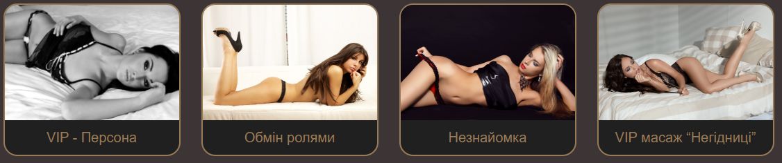| Подвійна порція уваги | “Подвійне задоволення” | Лесбі-шоу, Одночасний масаж від двох дівчат | Концентрована насолода, де гість знаходиться в центрі уваги двох німф |